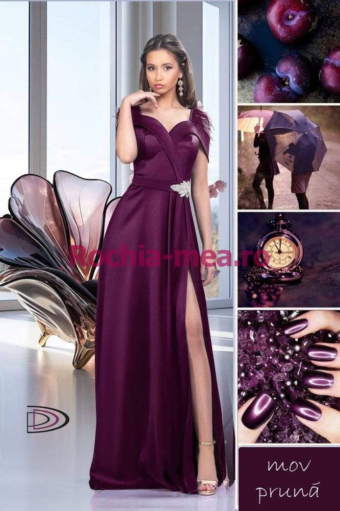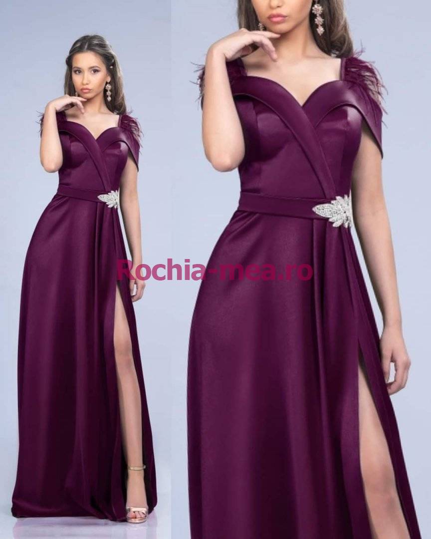 Rochie din tafta mov pruna cu accesoriu in talie |