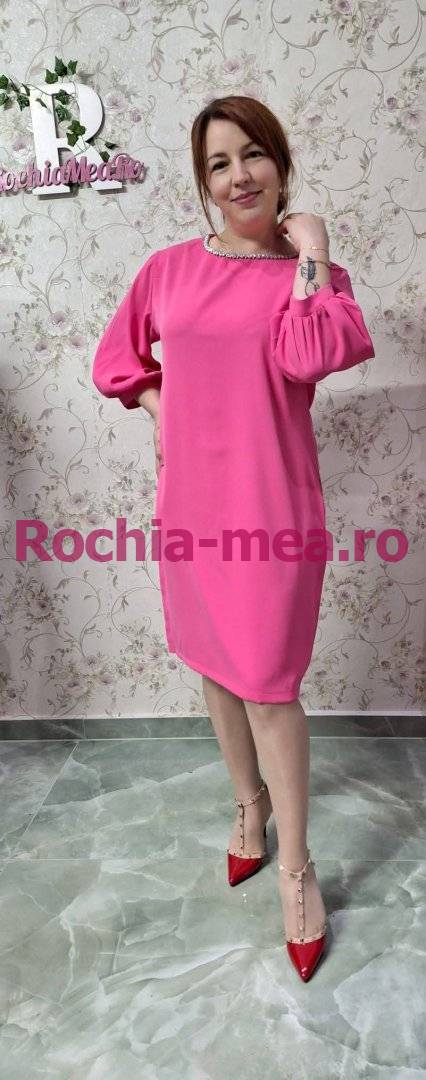 Comanda instant - Rochie fucsia cu strasuri la gat