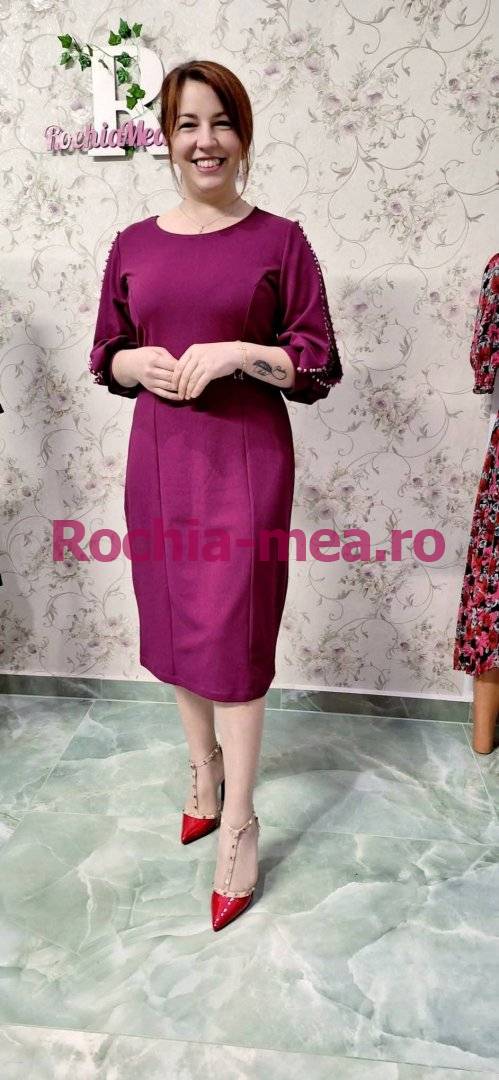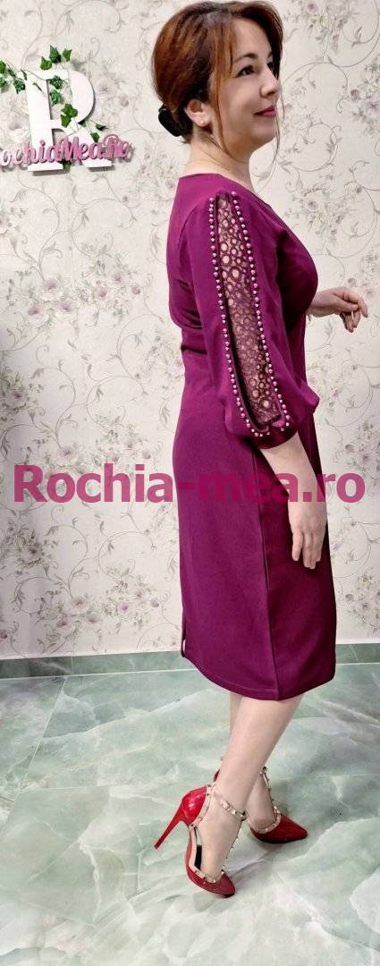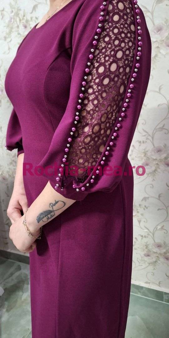 Comanda instant - Rochie mov cu maneci din dantela cu strasuri