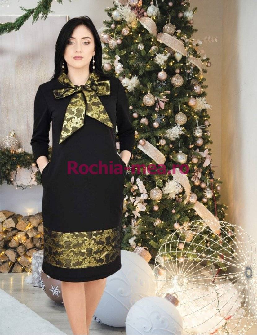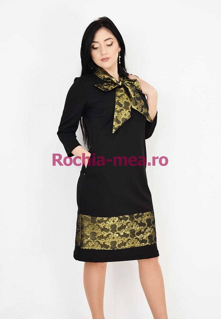 Rochie neagra cu croi larg ,esarfa si bordura aurie |